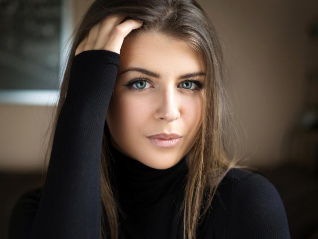 Обои Красивая шатенка в черном свитере