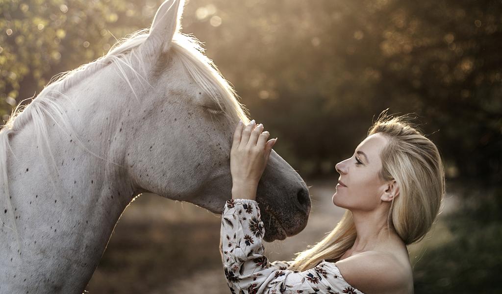 Обои Красивая девушка блондинка с лошадью