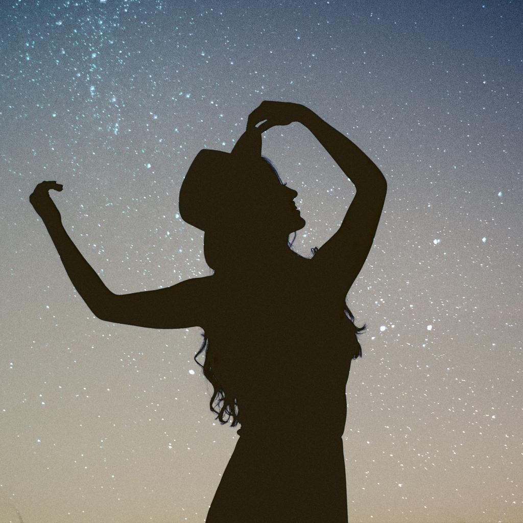 Обои Силуэт девушки в шляпе на фоне неба