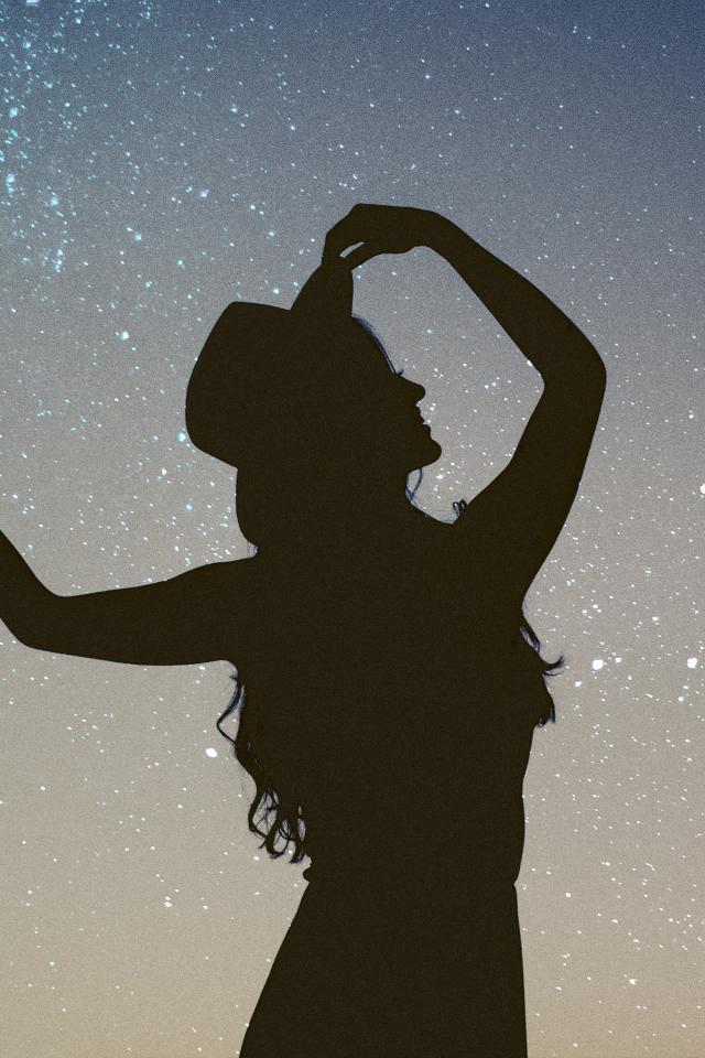Обои Силуэт девушки в шляпе на фоне неба
