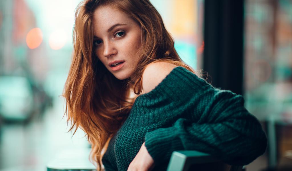 Обои Красивая рыжеволосая девушка в свитере