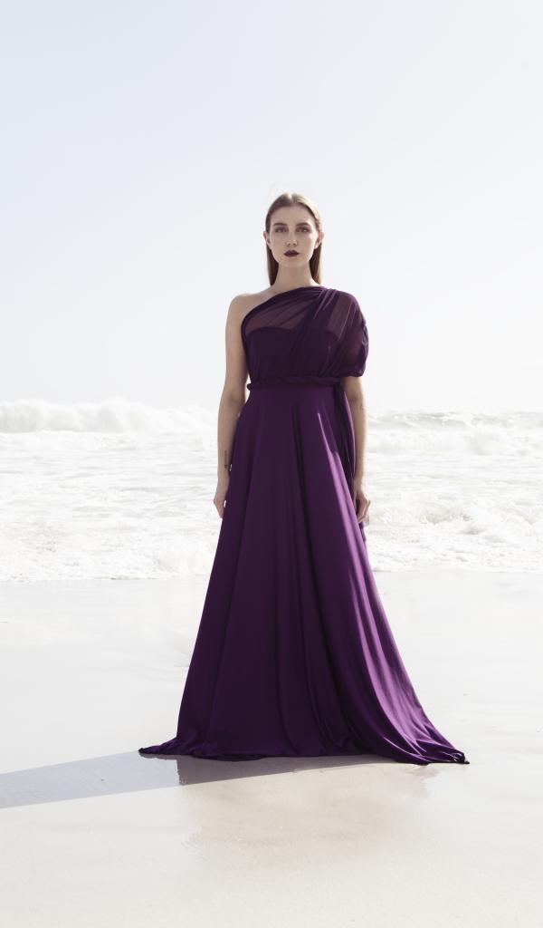Обои Молодая брюнетка в красивом фиолетовом платье