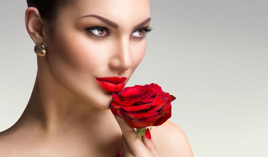 Обои Яркая стильная девушка с красной розой в руке