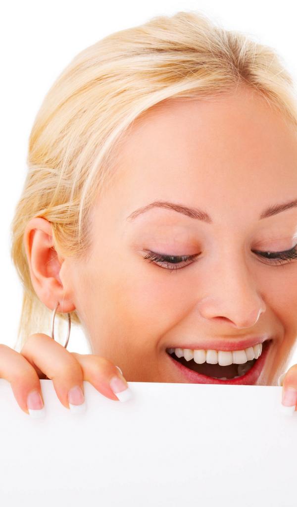 Обои Молодая блондинка с красивой улыбкой на белом фоне