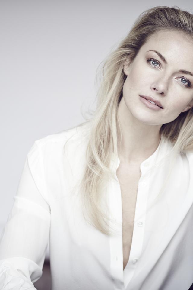 Обои Красивая голубоглазая девушка блондинка в белой рубашке