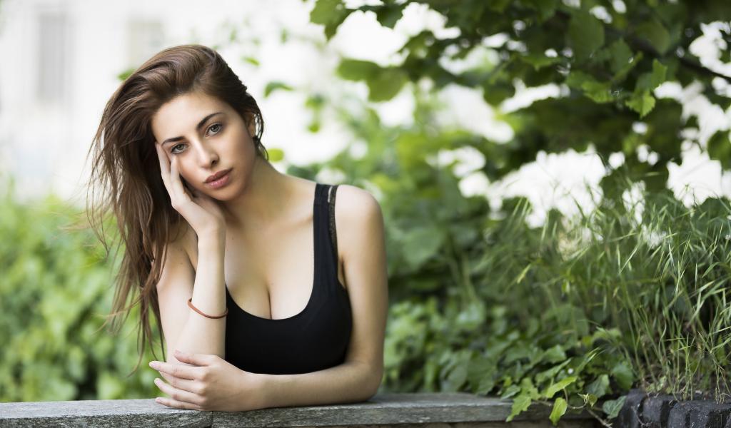 Обои Молодая длинноволосая девушка в черной майке