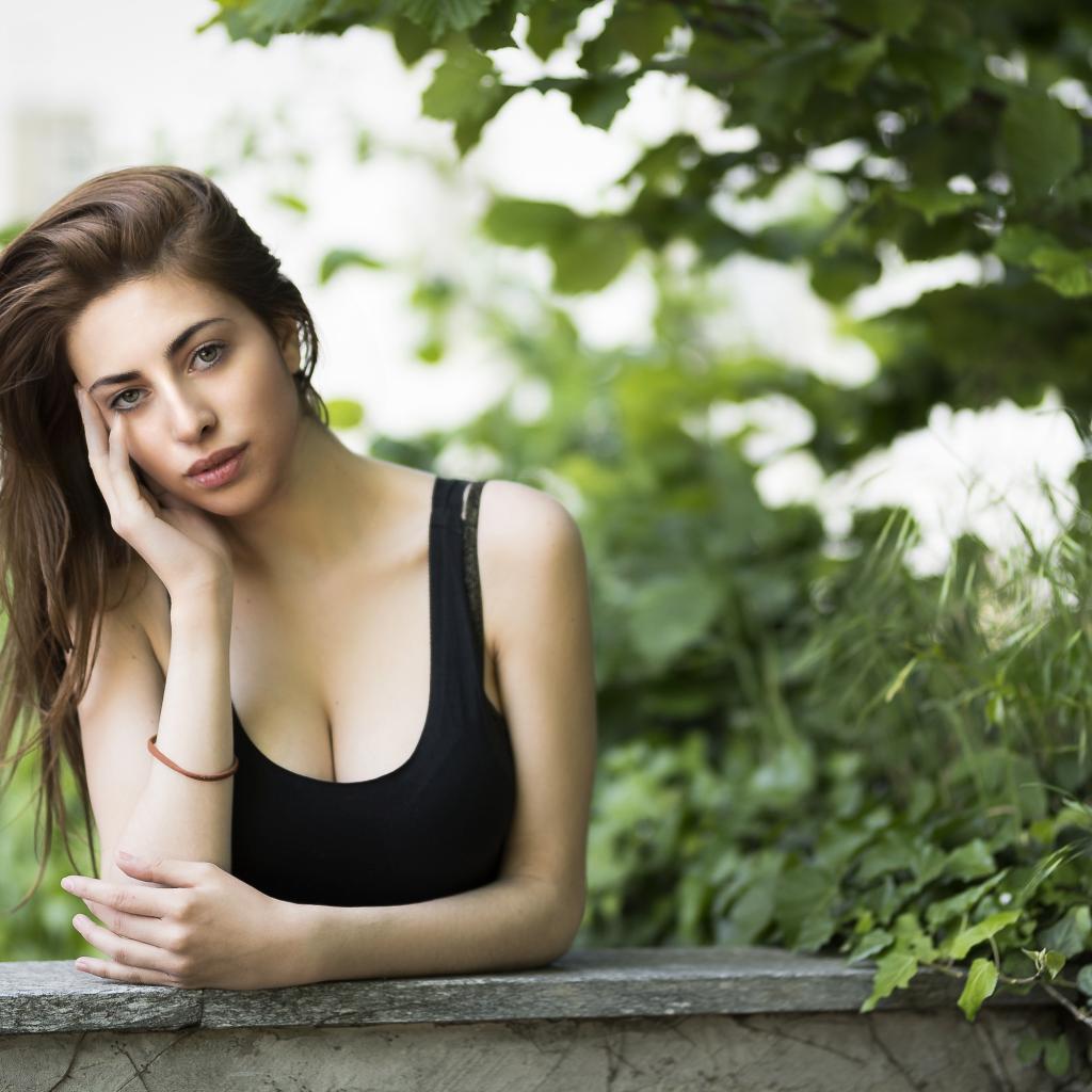 Обои Молодая длинноволосая девушка в черной майке