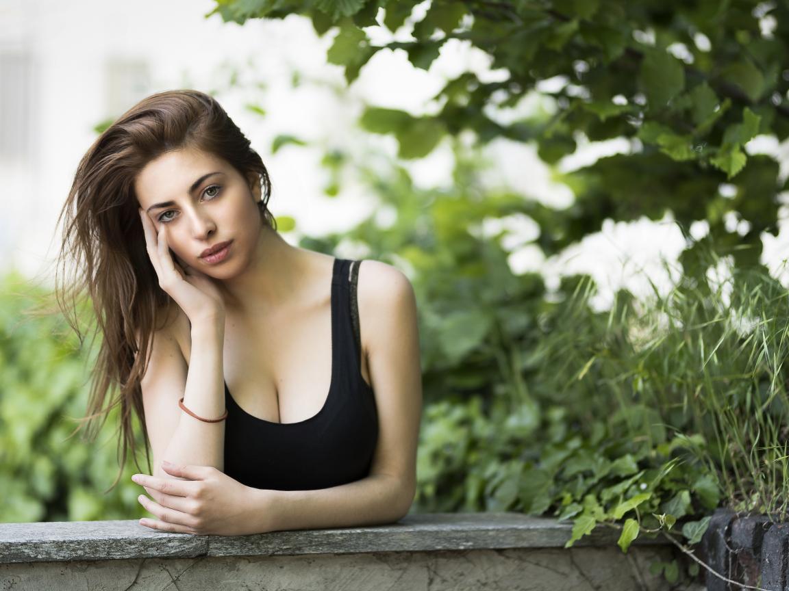 Обои Молодая длинноволосая девушка в черной майке