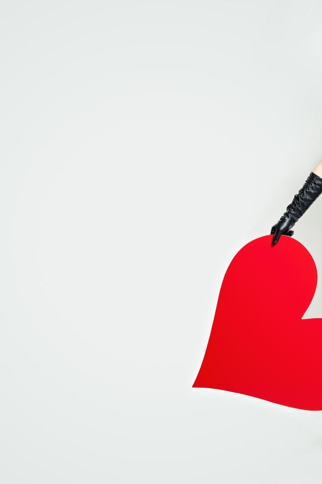 Обои Молодая девушка в черной шляпе с красным сердцем в руке