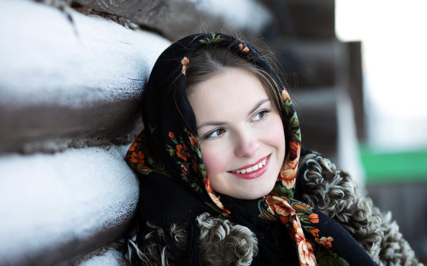 Обои Красивая русская девушка в платке зимой