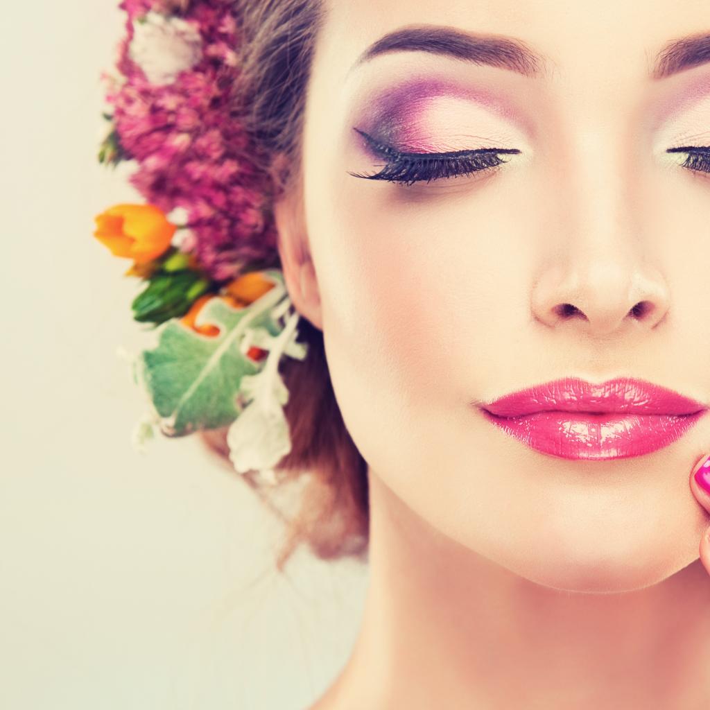 Обои Красивая девушка с розовым макияжем и закрытыми глазами