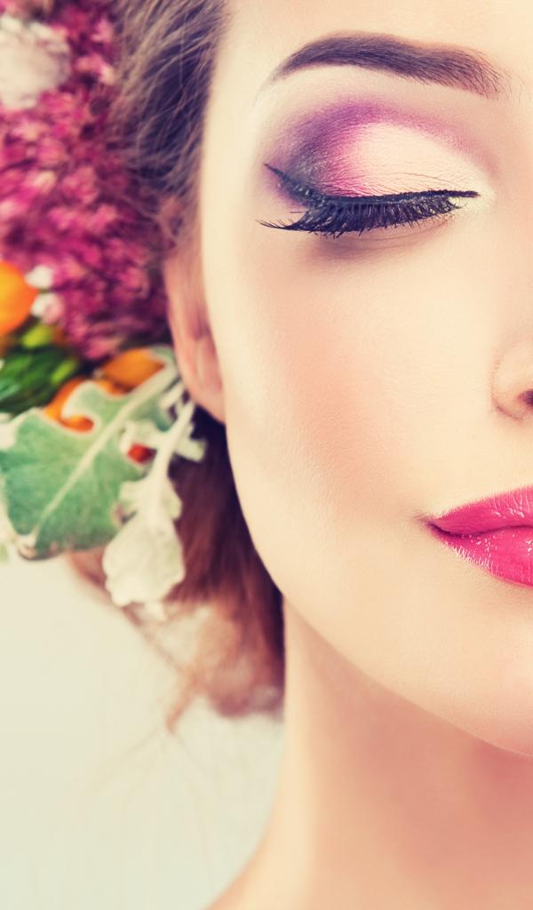 Обои Красивая девушка с розовым макияжем и закрытыми глазами