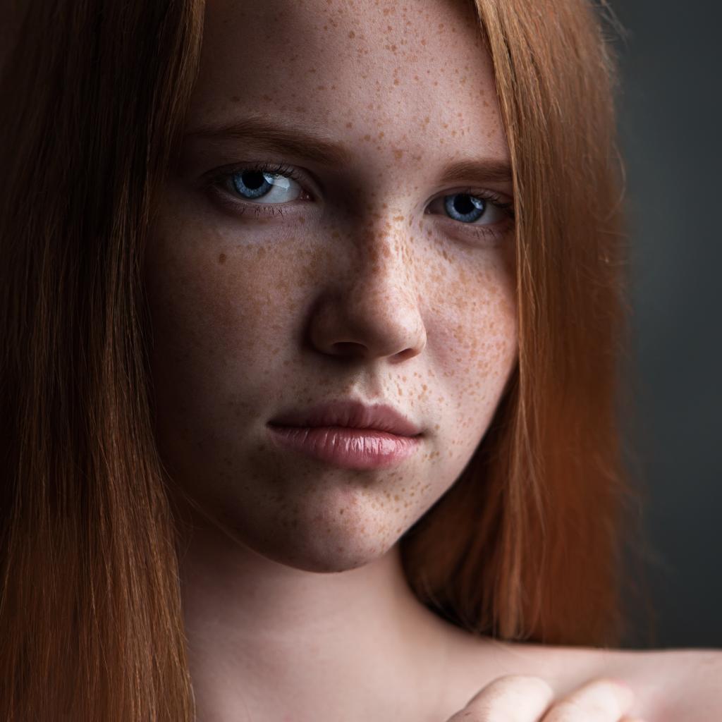 Обои Красивая голубоглазая рыжеволосая девушка с веснушками