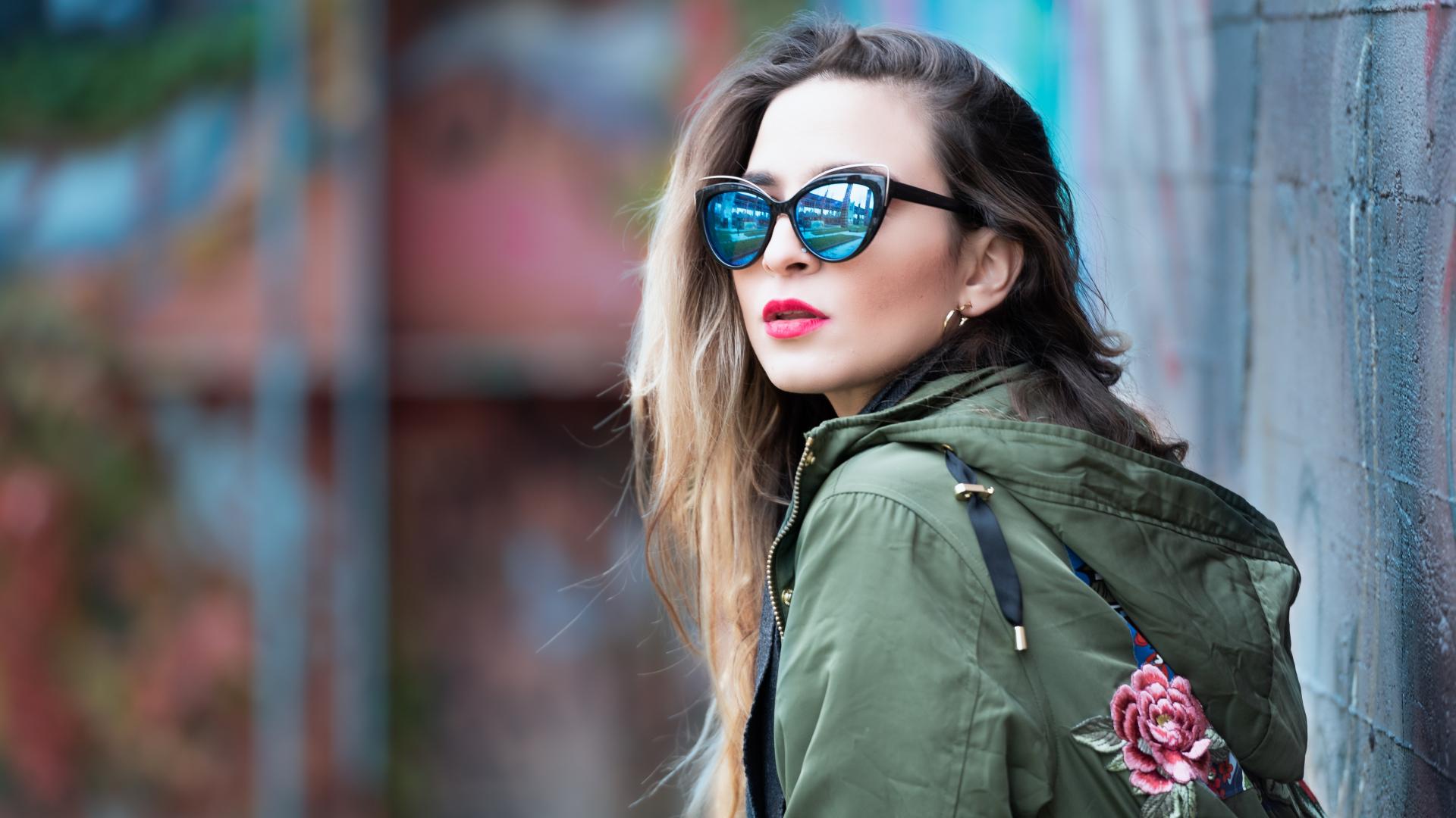 Обои Красивая девушка в куртке и солнечных очках
