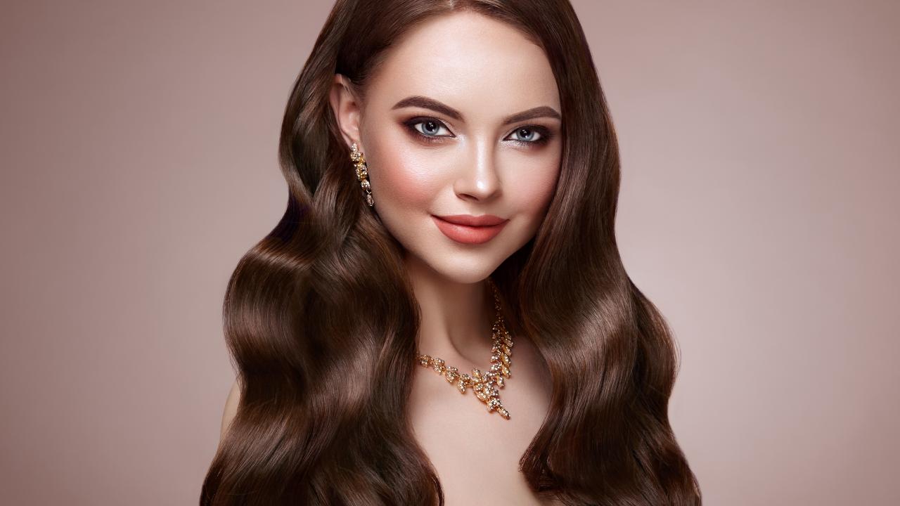 Обои Красивая длинноволосая девушка с украшением на шее