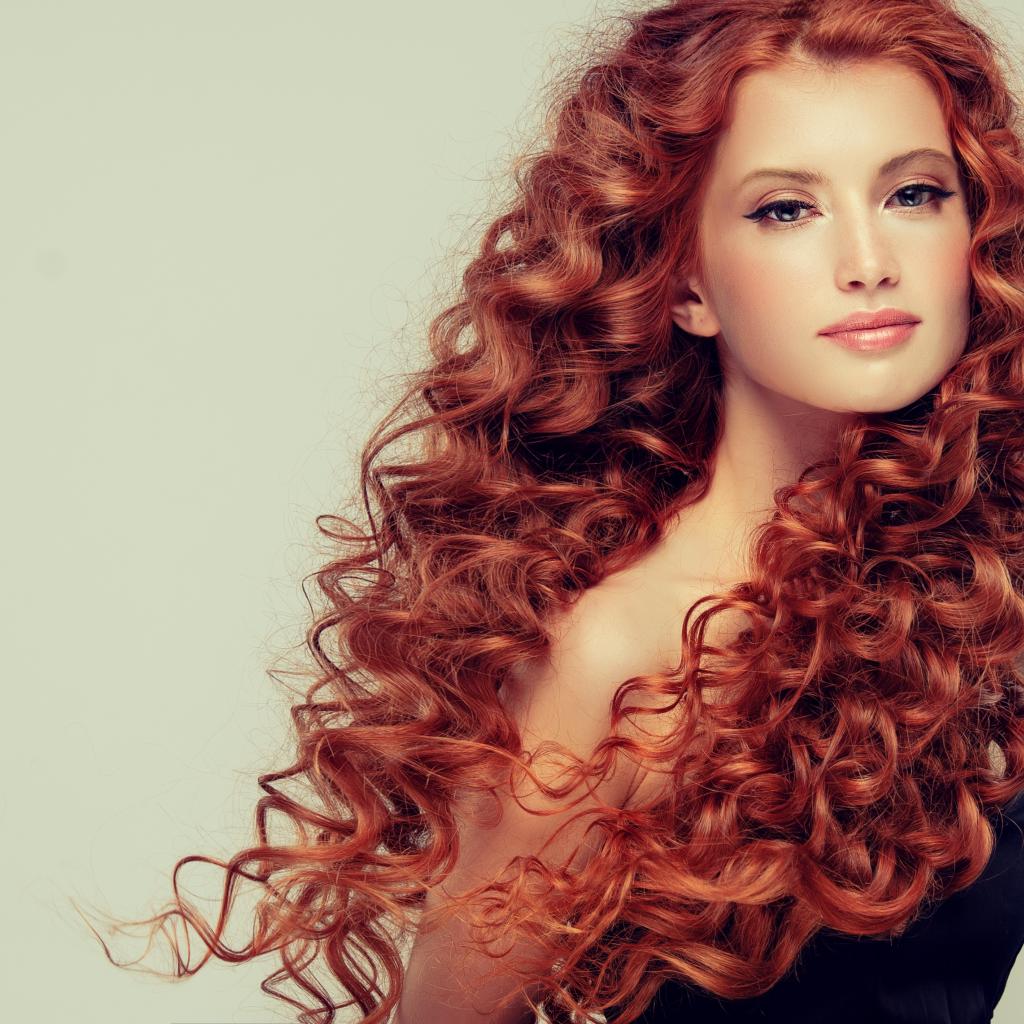 Обои Красивая рыжеволосая девушка на сером фоне