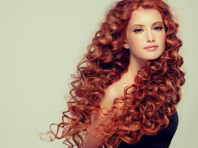 Обои Красивая рыжеволосая девушка на сером фоне