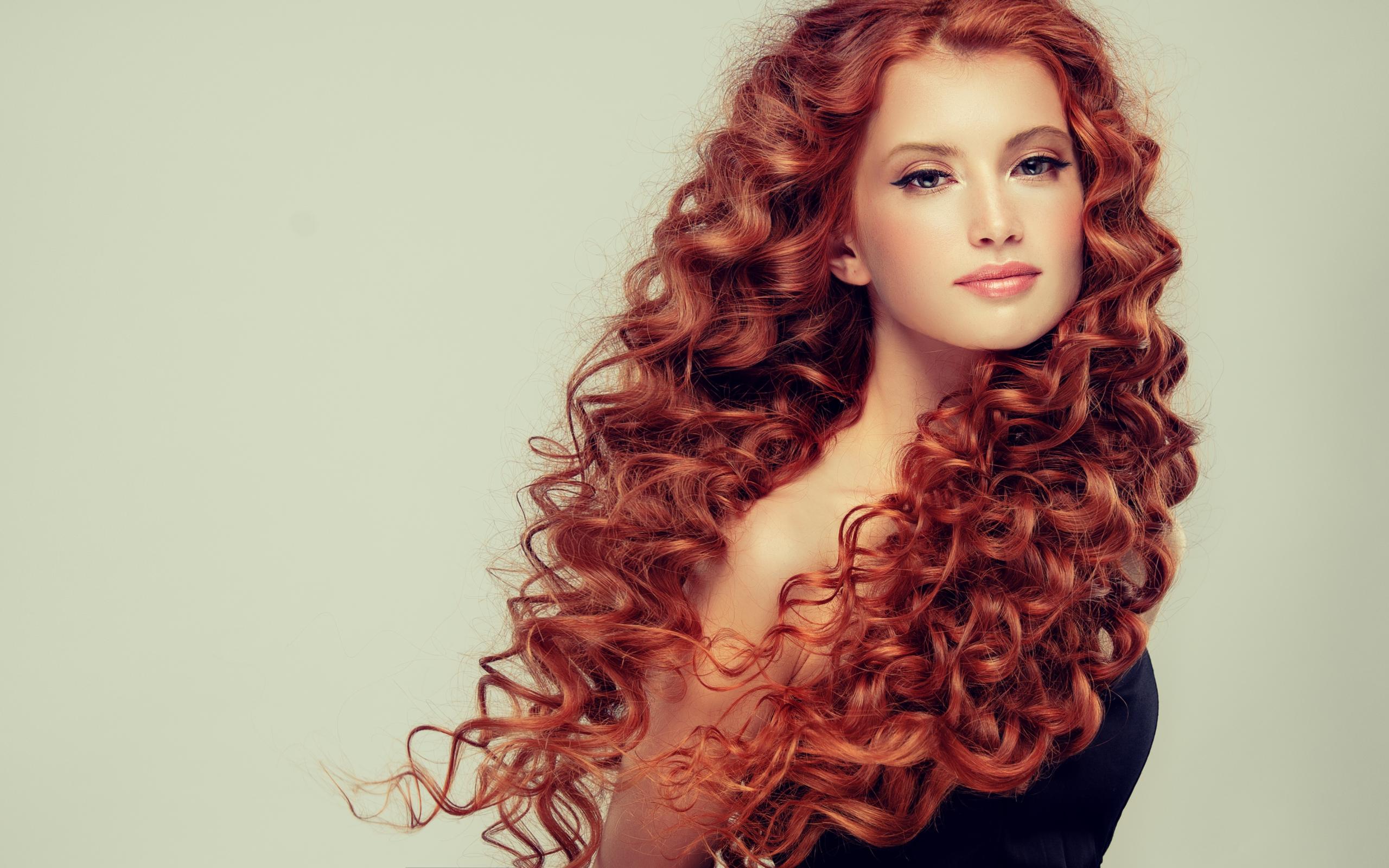 Обои Красивая рыжеволосая девушка на сером фоне
