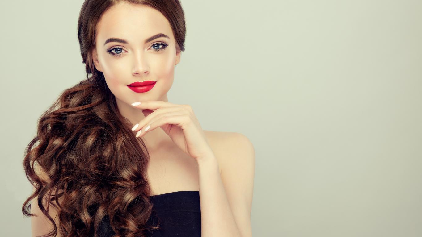Обои Молодая девушка с красивыми волосами на сером фоне