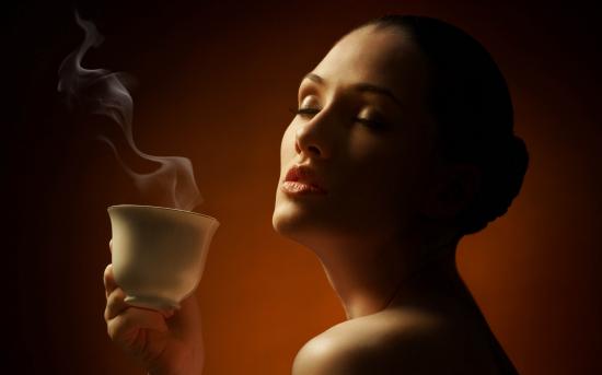 Обои Очаровательная нежная девушка наслаждается кофе
