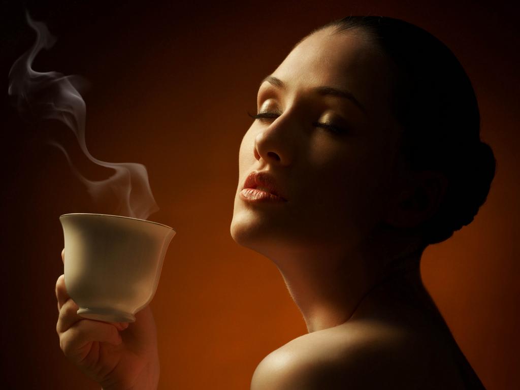 Обои Очаровательная нежная девушка наслаждается кофе