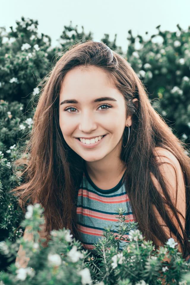 Обои Улыбающаяся девушка сидит в зеленых зарослях