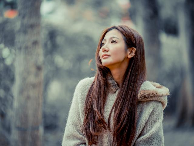 Обои Длинноволосая девушка азиатка смотрит в сторону