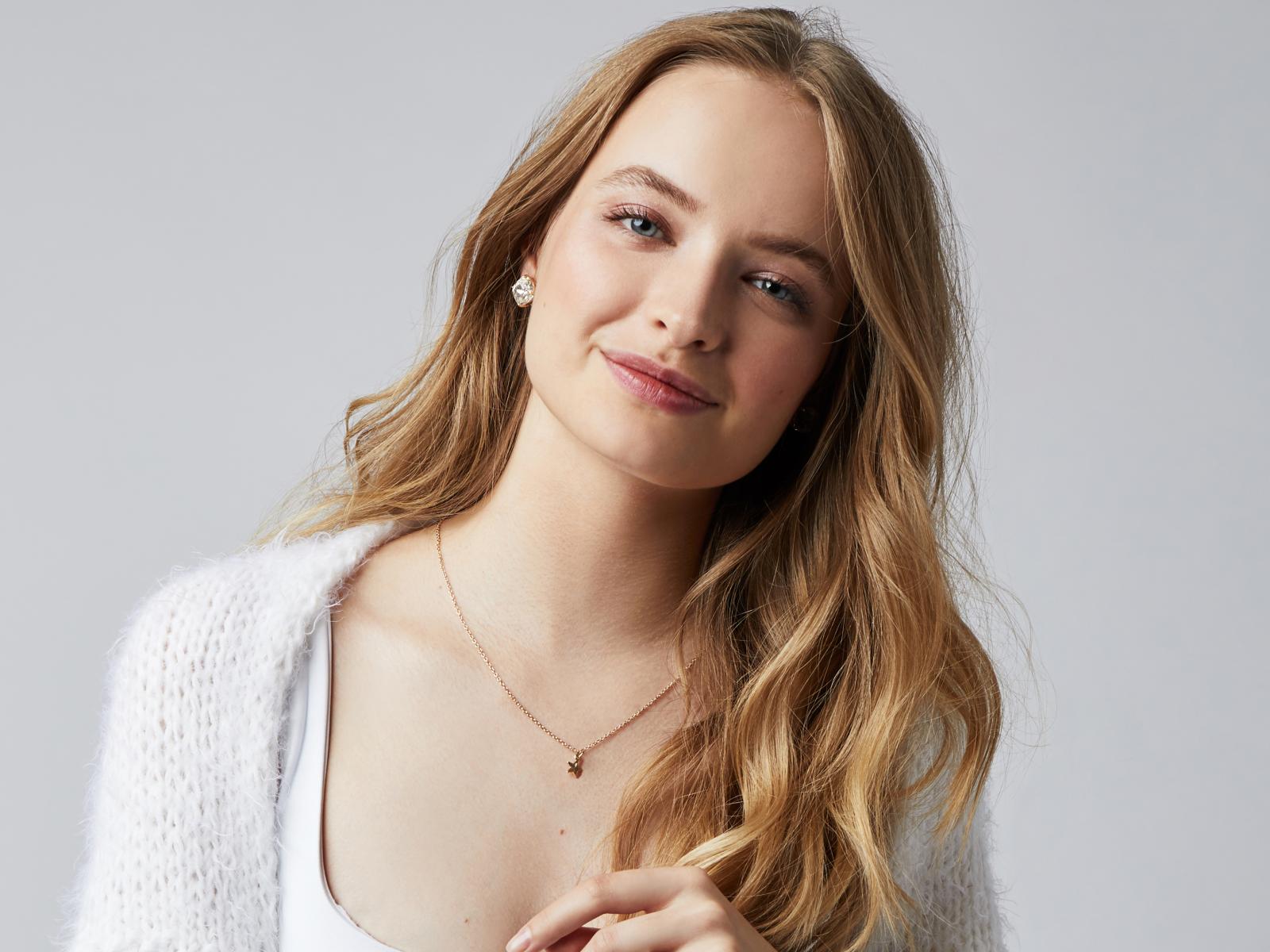Обои Нежная улыбающаяся голубоглазая девушка на сером фоне