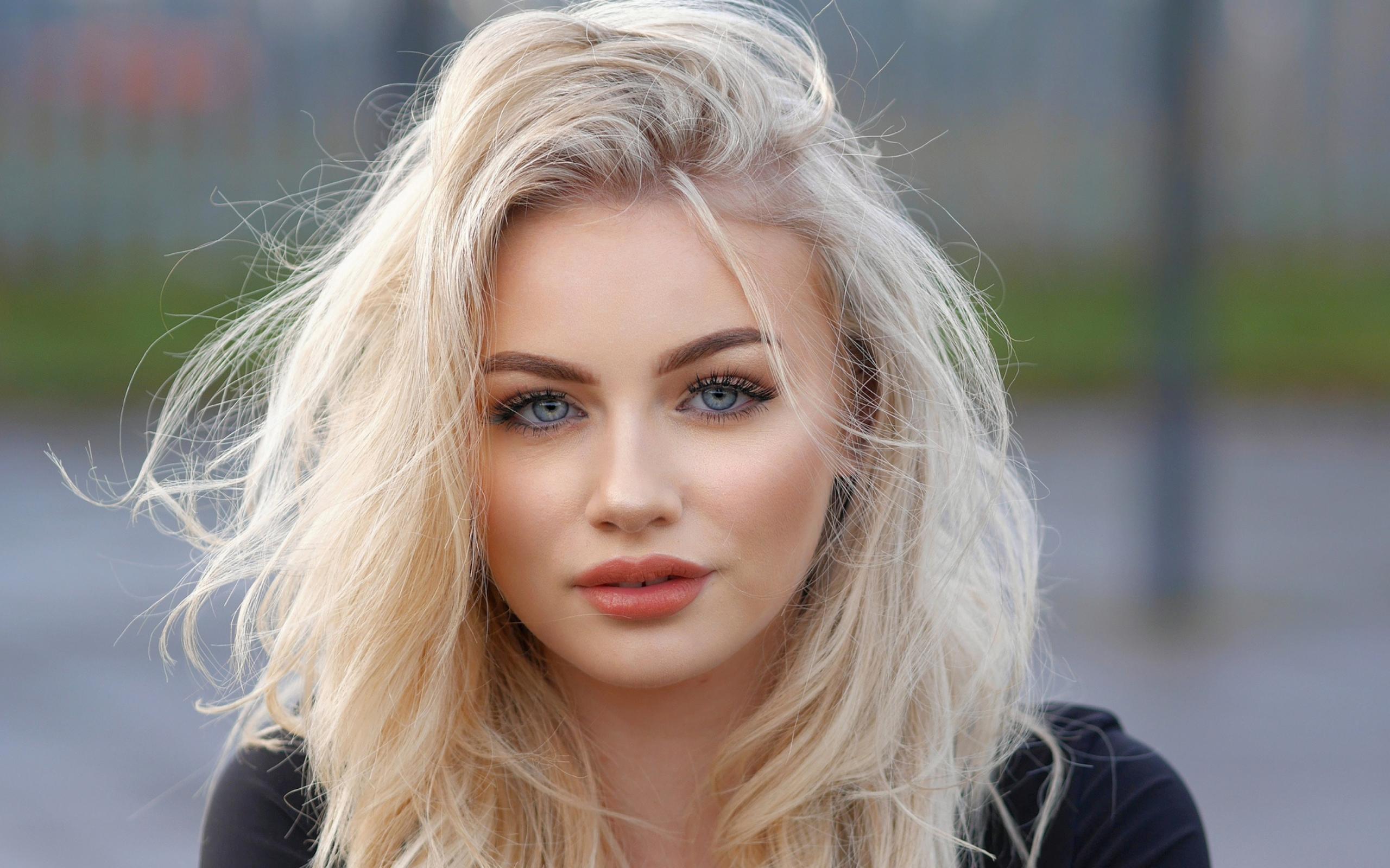 Обои Красивая голубоглазая блондинка лицо крупным планом
