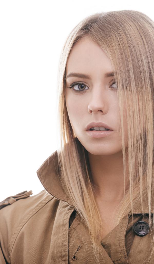 Обои Красивая грустная девушка на белом фоне