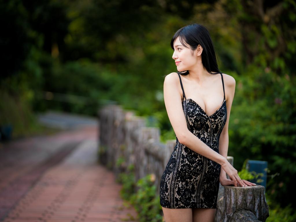 Обои Красивая девушка азиатка в коротком платье