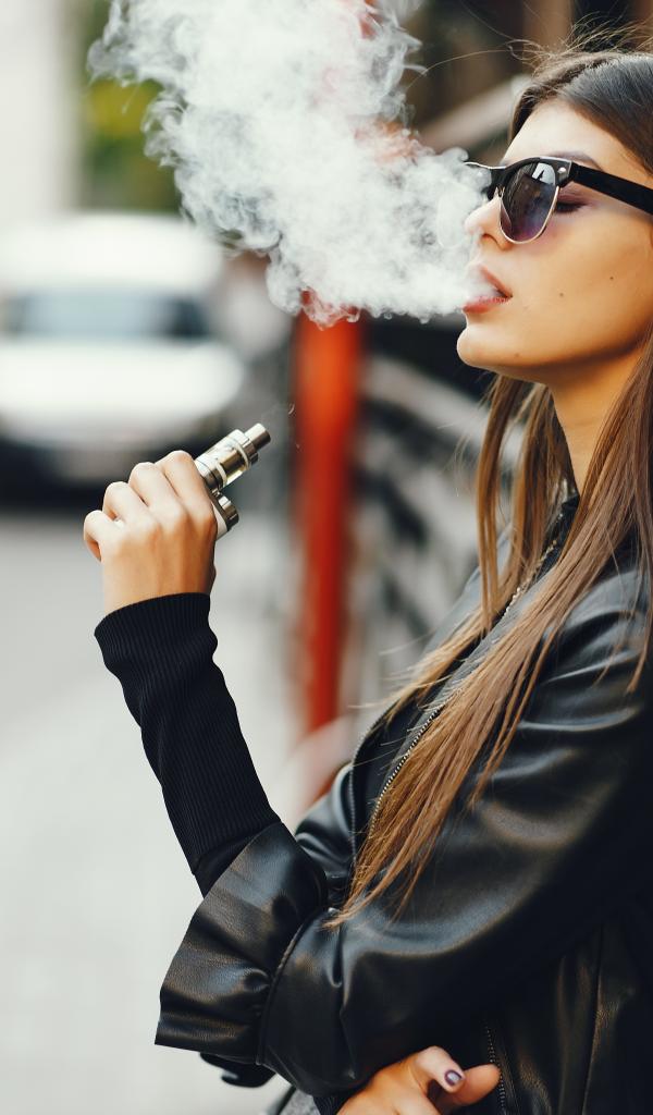 Обои Девушка в солнечных очках пускает дым со рта