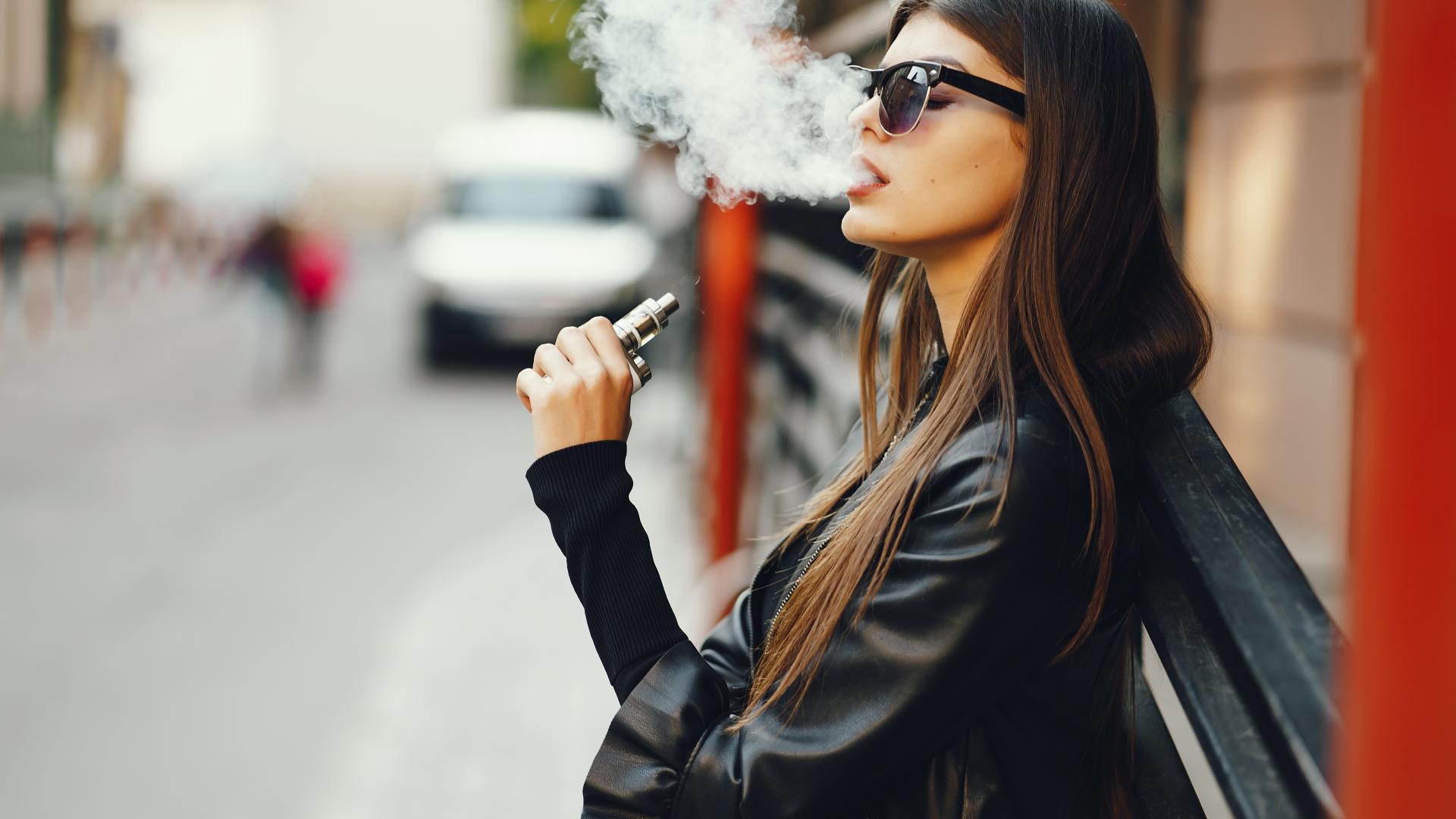 Обои Девушка в солнечных очках пускает дым со рта