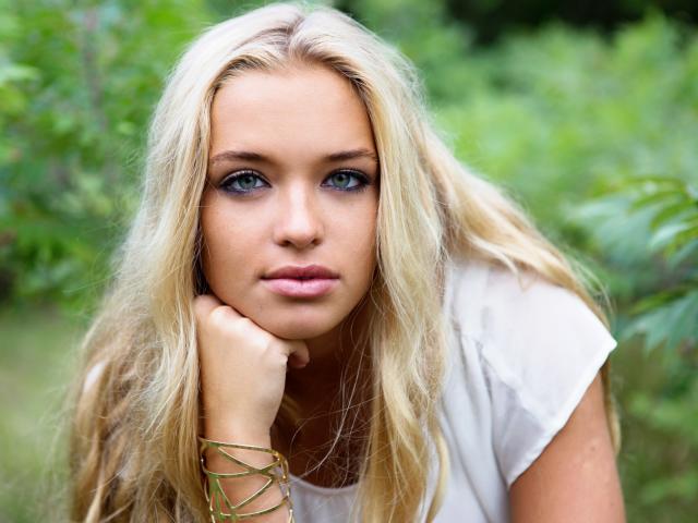 Обои Красивая зеленоглазая девушка со светлыми волосами