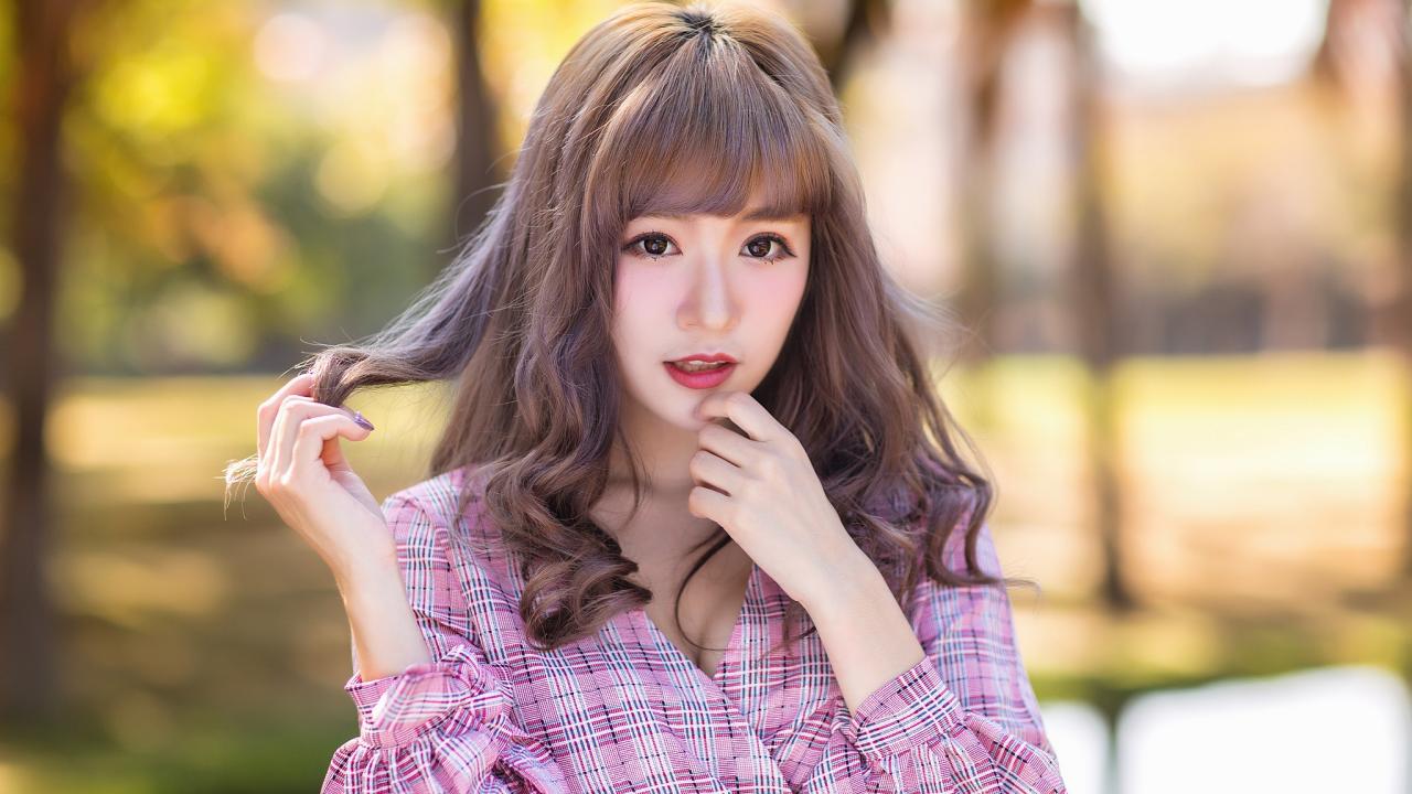 Обои Девушка азиатка в рубашке с русыми волосами