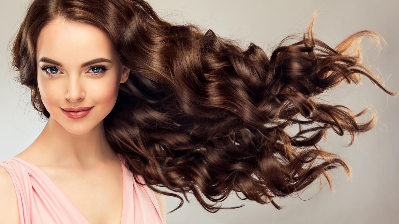 Обои Красивые длинные волосы у девушки на сером фоне