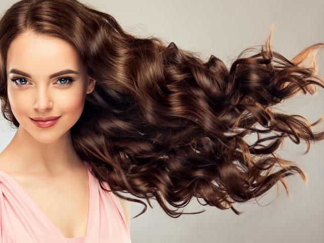 Обои Красивые длинные волосы у девушки на сером фоне