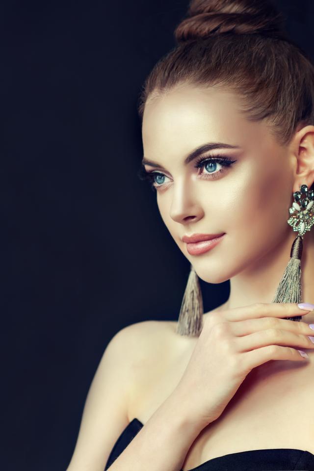 Обои Красивая молодая девушка с макияжем и красивыми серьгами