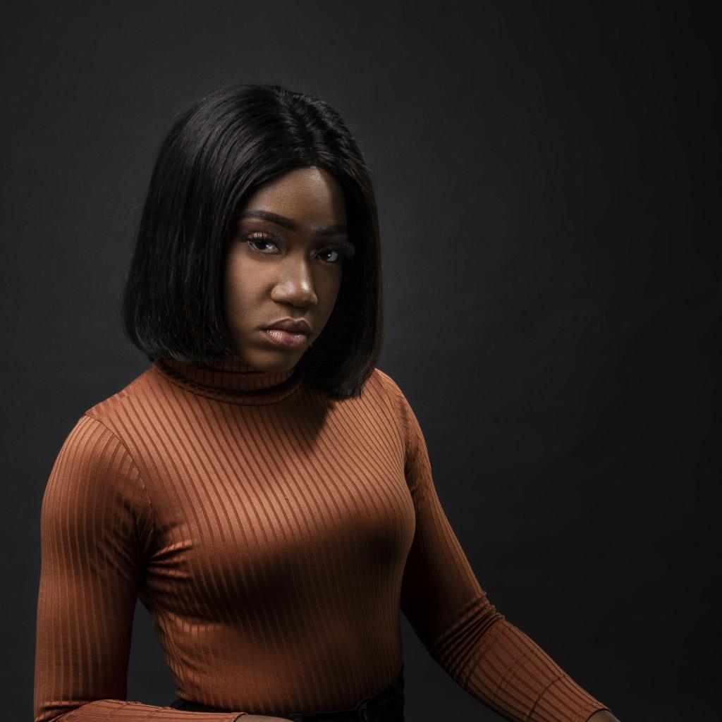 Обои Темнокожая девушка с короткой стрижкой на сером фоне