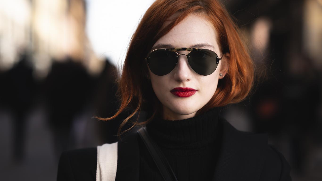 Обои Красивая рыжеволосая девушка в темных очках