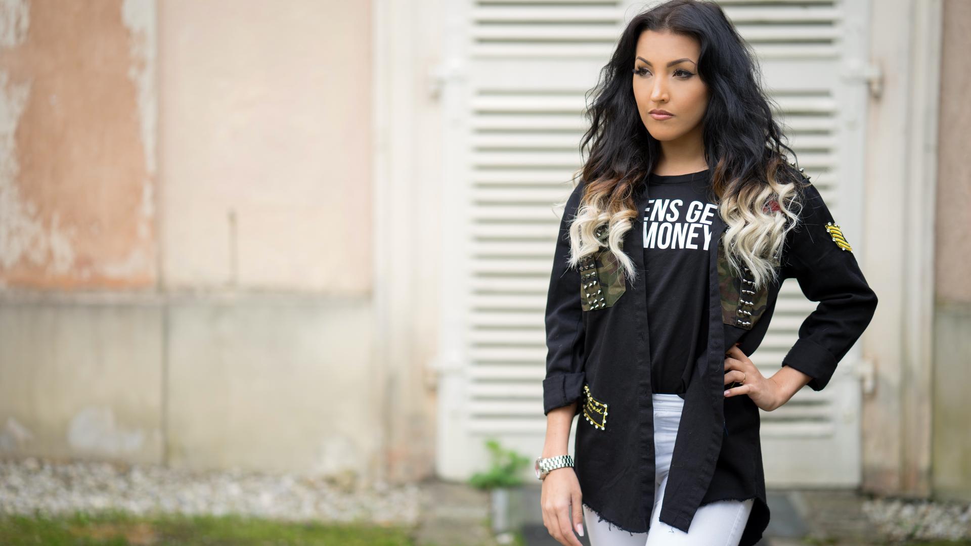 Обои Красивая стильная девушка с часами на руке