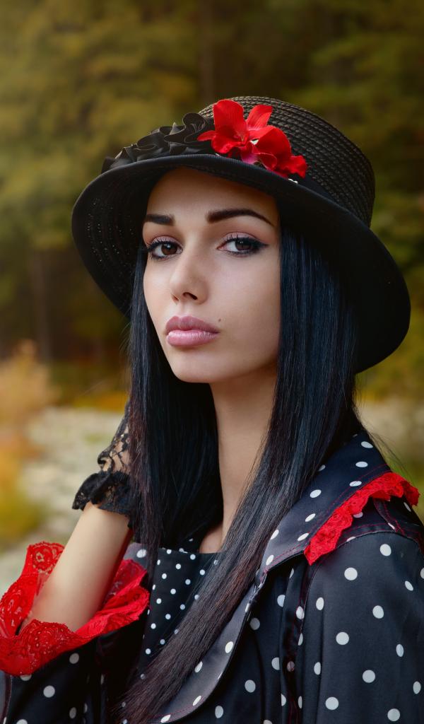 Обои Красивая кареглазая девушка с черной шляпе