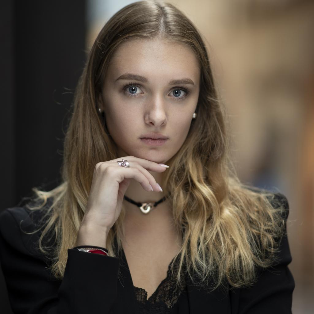 Обои Молодая нежная голубоглазая девушка с рукой у лица