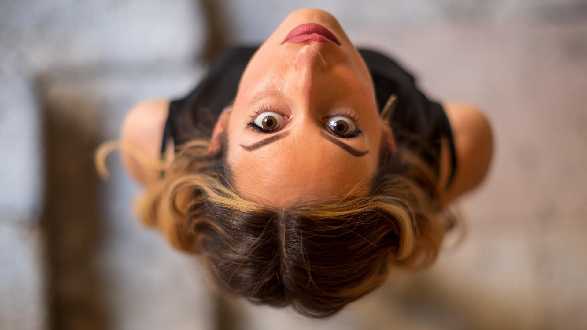Обои Кареглазая девушка смотрит вверх