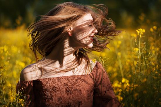 Обои Красивая молодая девушка на поле с желтыми цветами
