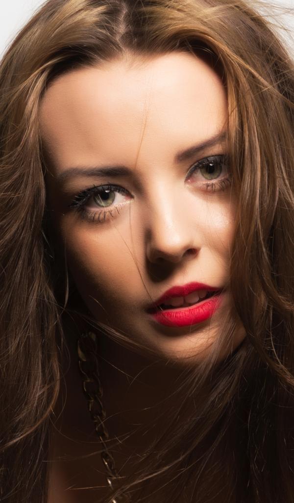 Обои Длинноволосая шатенка с накрашенными губами