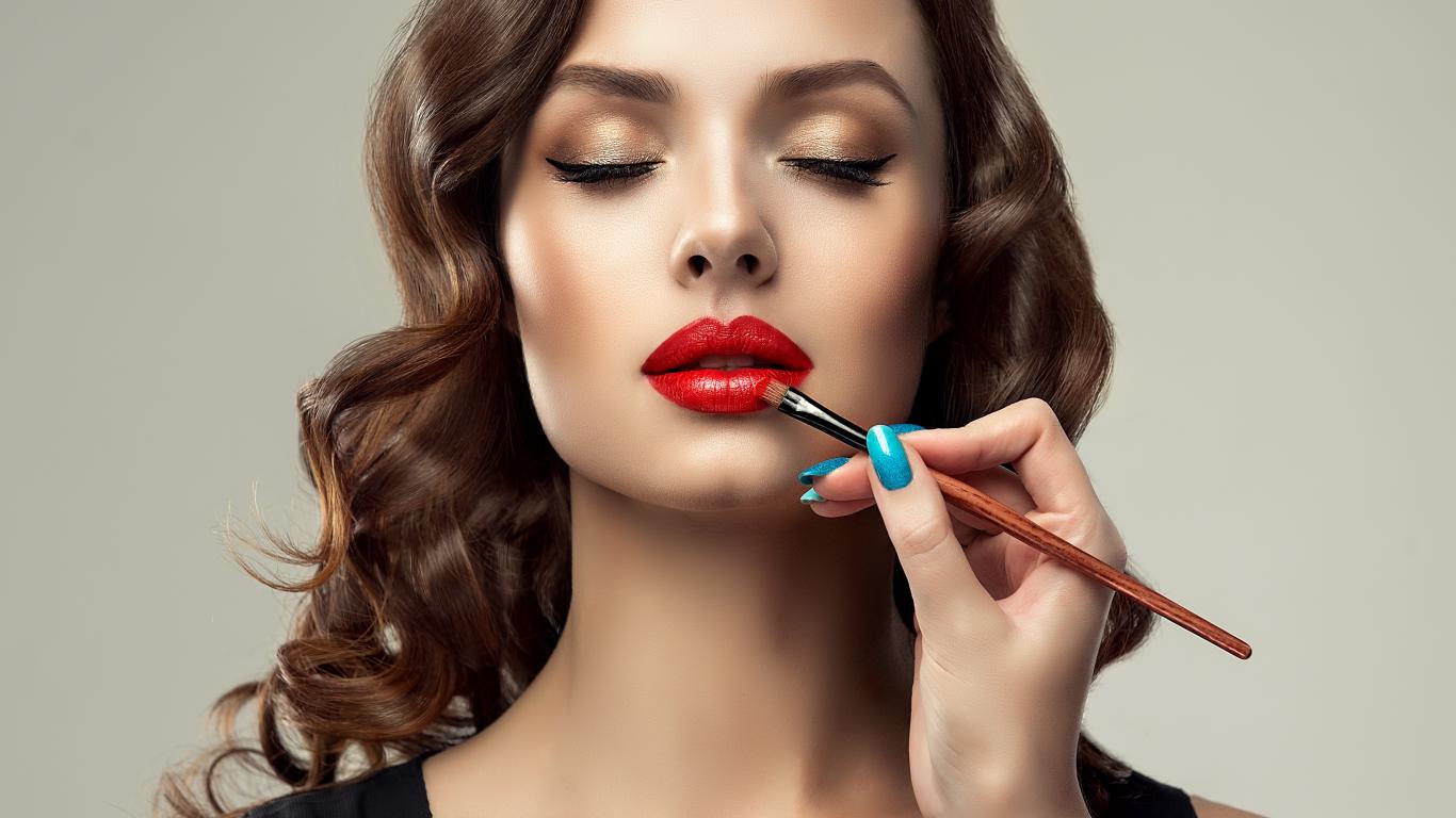 Обои Красивой молодой девушке с закрытыми глазами делают макияж