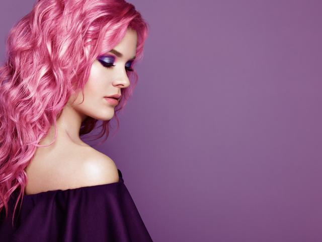 Обои Девушка с розовыми волосами на сиреневом фоне
