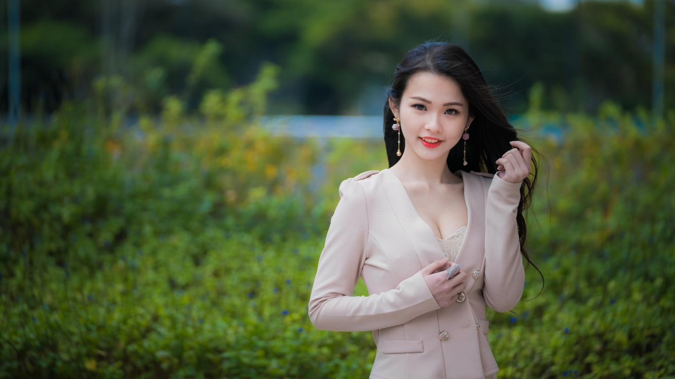 Обои Улыбающаяся девушка азиатка в костюме