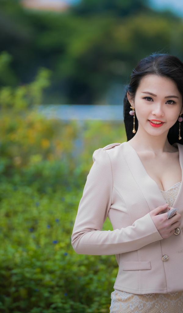 Обои Улыбающаяся девушка азиатка в костюме